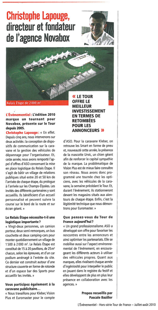 Je souhaite remercier toutes les équipes Novabox qui travaillent toute l'année sur ce projet. Anticipation, rigueur, sens de l'organisation sans faille : c'est agréable de sentir que tout est constamment sous contrôle ! Et toujours dans la bonne humeur.