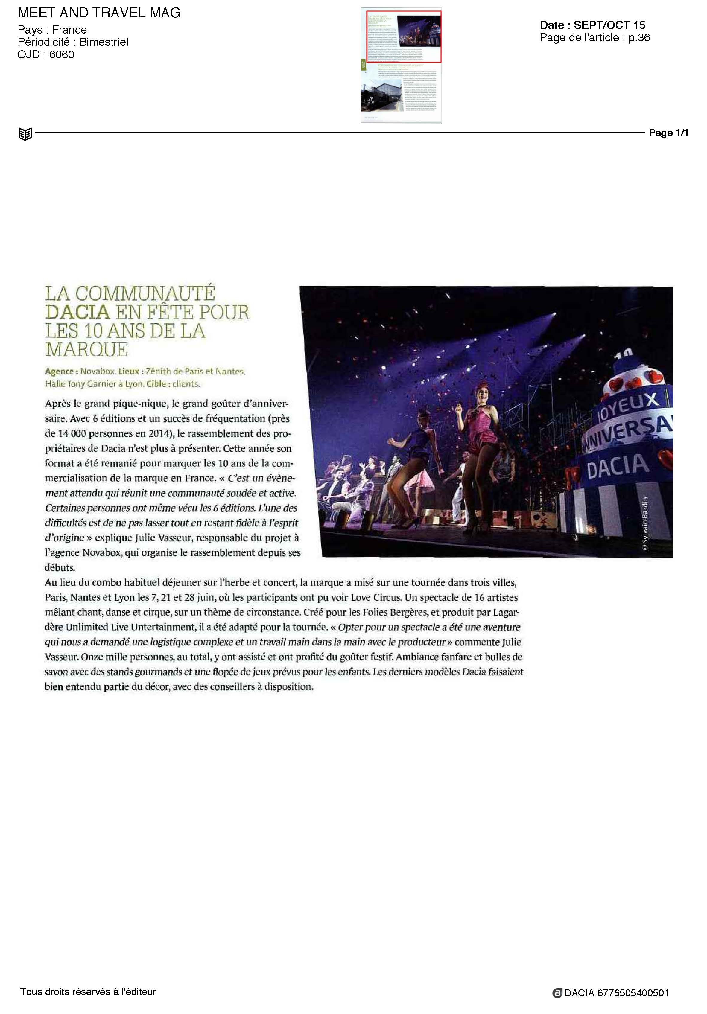Trophée remporté pour l’événement conçu à l’occasion des 10 ans de la marque : 11 000 personnes de la Communauté Dacia rassemblées autour d’un goûter géant et du spectacle Love Circus.